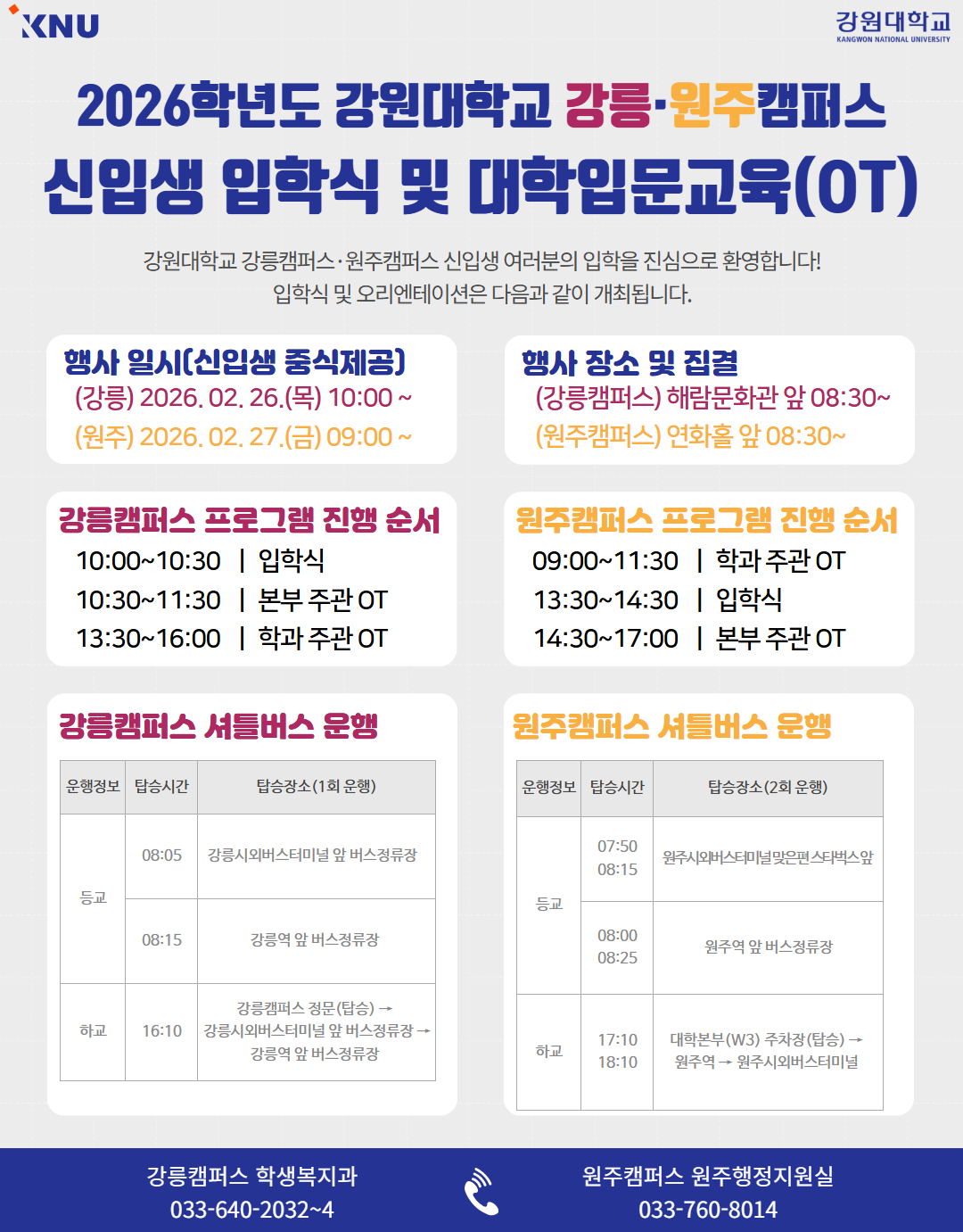 2026학년도 강원대학교 강릉·원주캠퍼스 신입생 입학식 및 대학입문교육(OT) 안내
