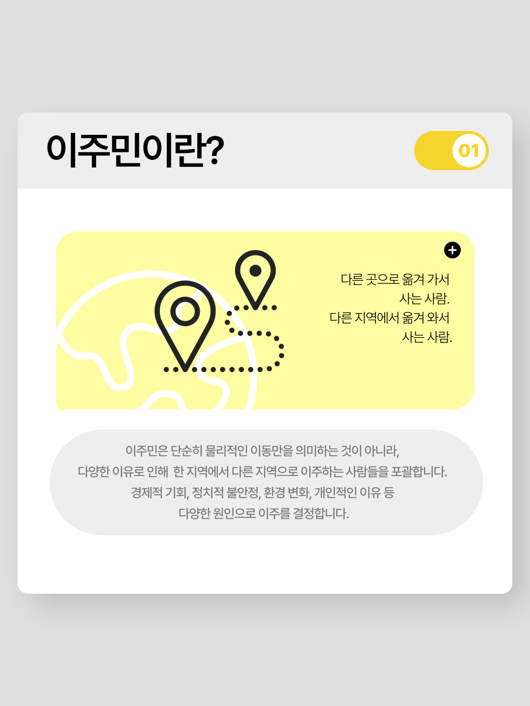 강의내용과, 활동가 인터뷰, 강연을 바탕으로 이주민과 공존하는 방법에 대한 카드뉴스를 제작하였습니다