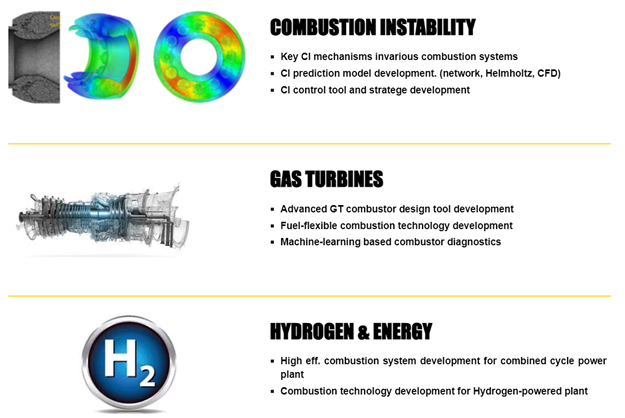 EPL(Energy&Power system Lab.)에서는 항공용 및 발전용 가스터빈 연소기 개발 및 1D/3D 연소 진동 모델링과 제어에 대한 연구와 더불어 머신러닝 기반의 연소기 진단 툴 개발과 수소 에너지 시스템 해석 연구를 수행하고 있습니다.