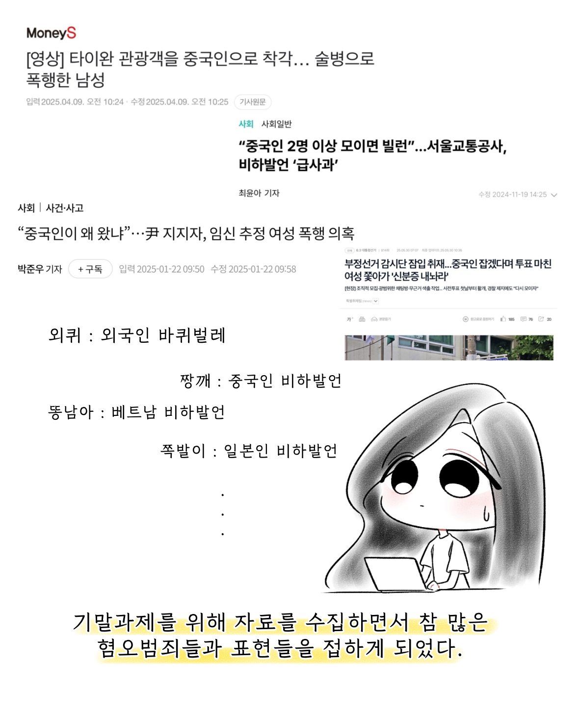 fnctId=bbs,fnctNo=864 2025-1 이민다문화현장세미나_캡스톤디자인(우효주) 작성일 2025.06.20 작성자 김민정 조회수 1865 *2025년 1학기 전공선택 과목으로 개설된 <이민다문화현장세미나> 수업의 결과물입니다! 제노포비아에 대해 인스타툰으로 그려보았습니다 :) 첨부파일 첨부파일이(가) 없습니다.